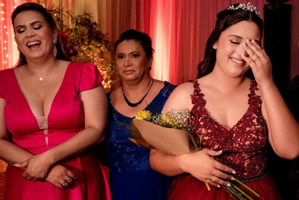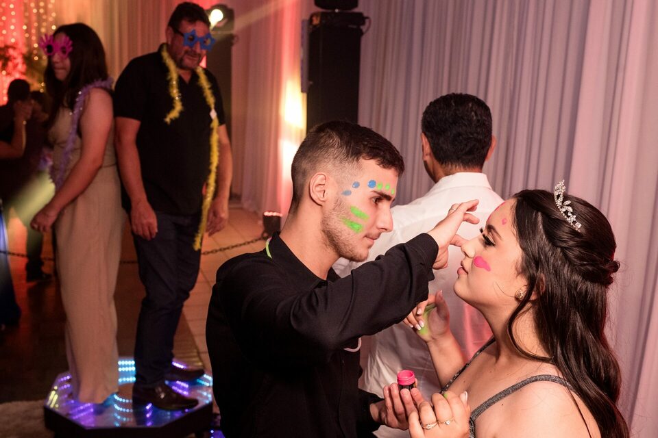 Após os preparativos, foi hora de celebrar o tão aguardado aniversário. A festa foi repleta de emoções e surpresas preparadas pela família para Diovana. Mas não foi apenas um evento marcado por lágrimas; houve também muita dança e diversão, com direito até a colocarem o fotógrafo para dançar junto com eles.