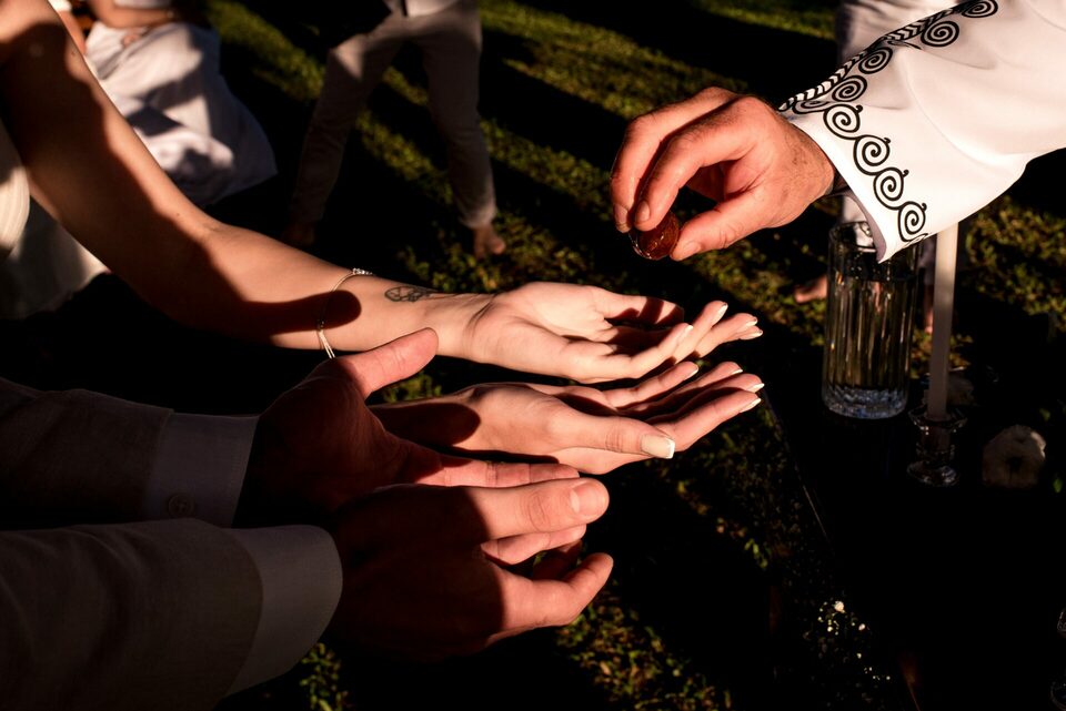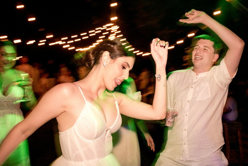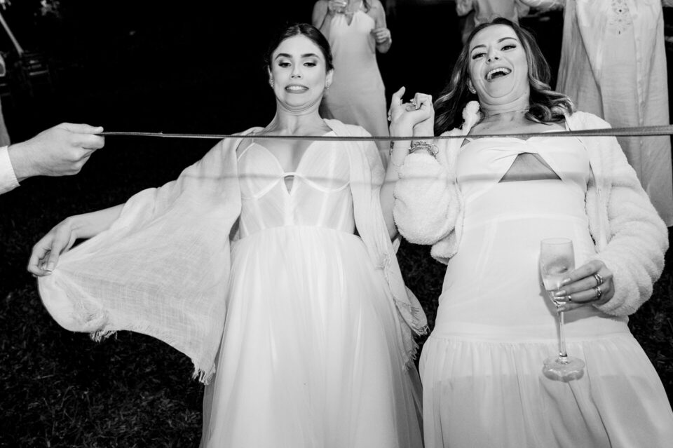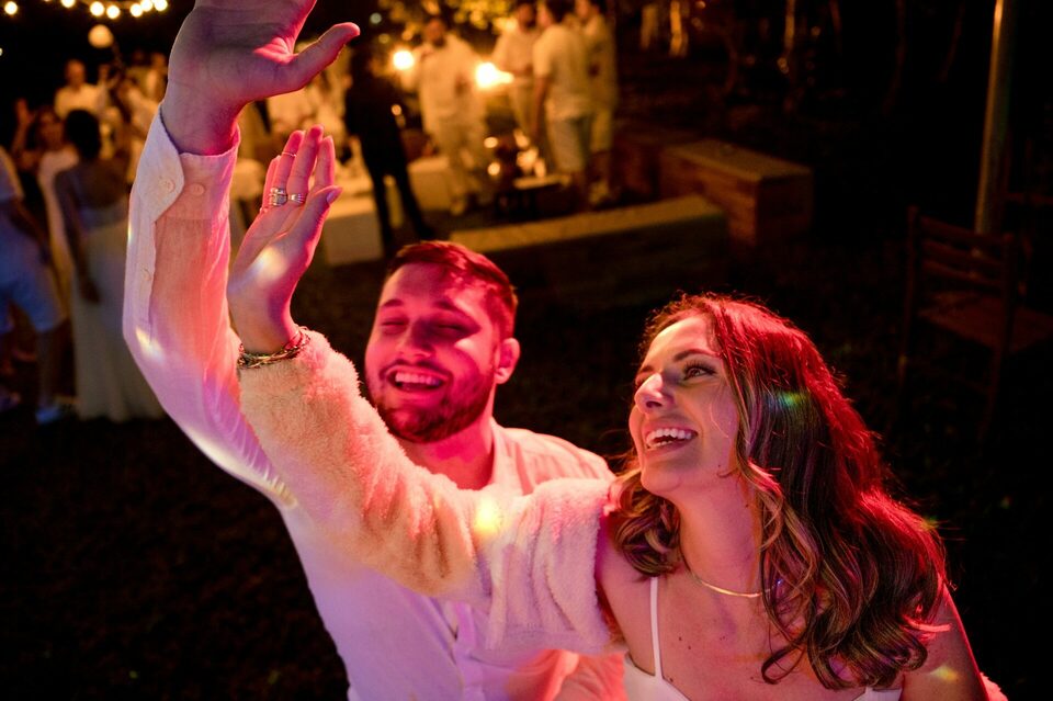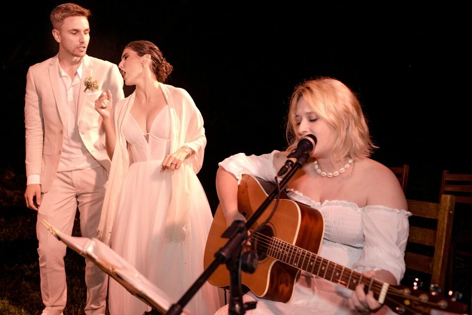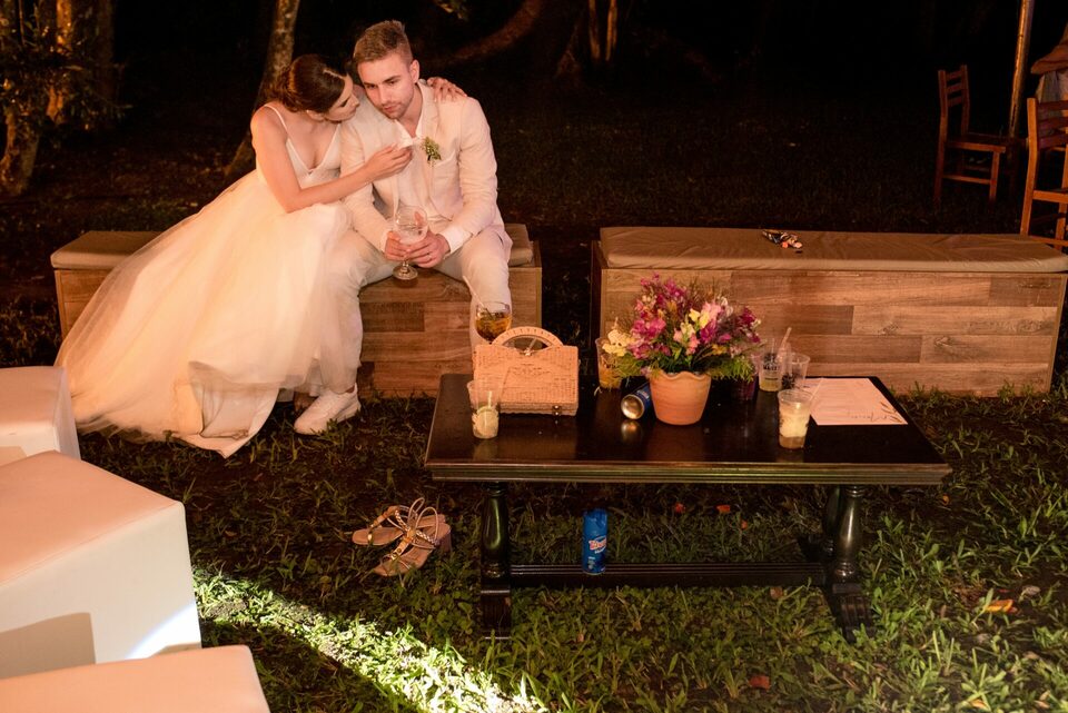 A recepção dos convidados também aconteceu ao ar livre, criando um ambiente descontraído e festivo. Foi uma festa repleta de alegria, música e dança, onde amigos e familiares se uniram para comemorar o amor e a união de Eduarda e Yuri.