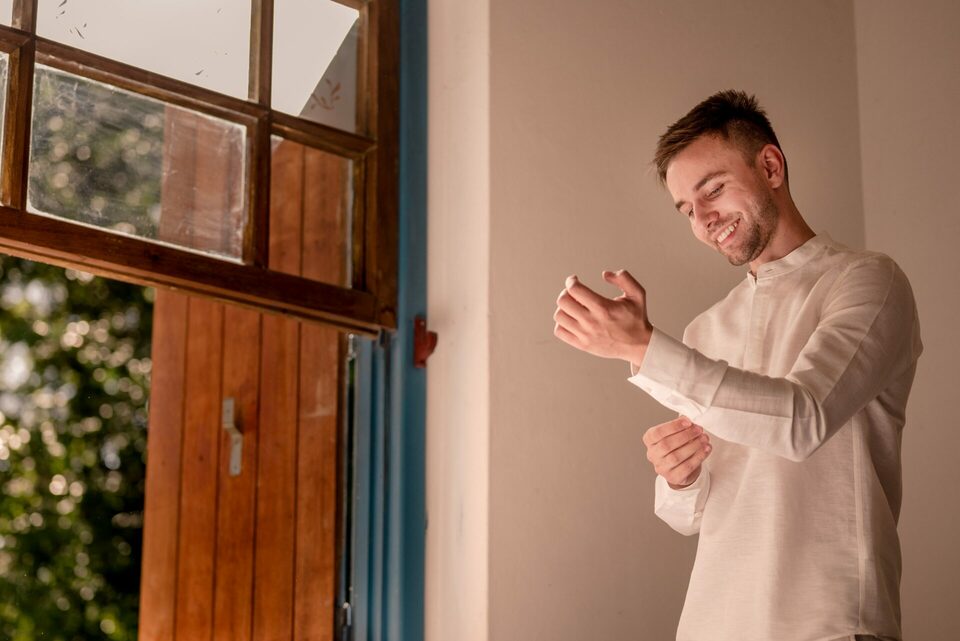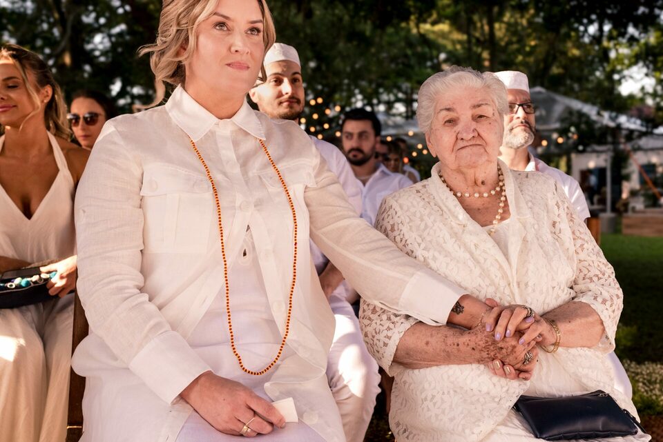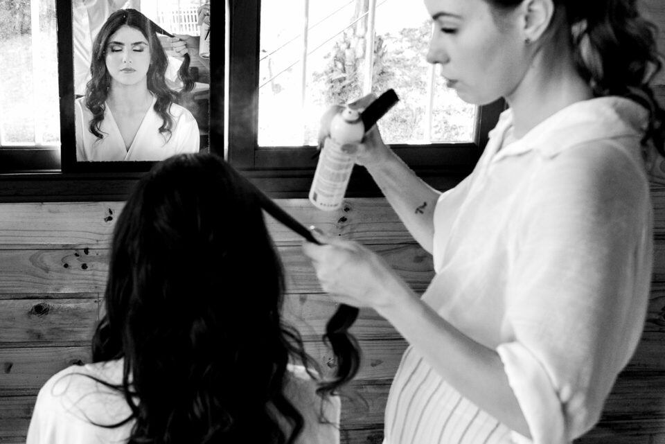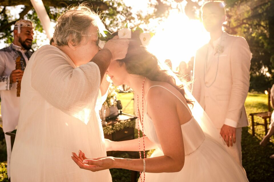 O dia começou com o making of da noiva em uma cabana no interior de Portão, enquanto o noivo se preparava na casa da família, o mesmo local onde a cerimônia aconteceu. Todos os convidados foram convidados a vestir branco, sem chinelo, em respeito à celebração do casamento na religião Candomblé.