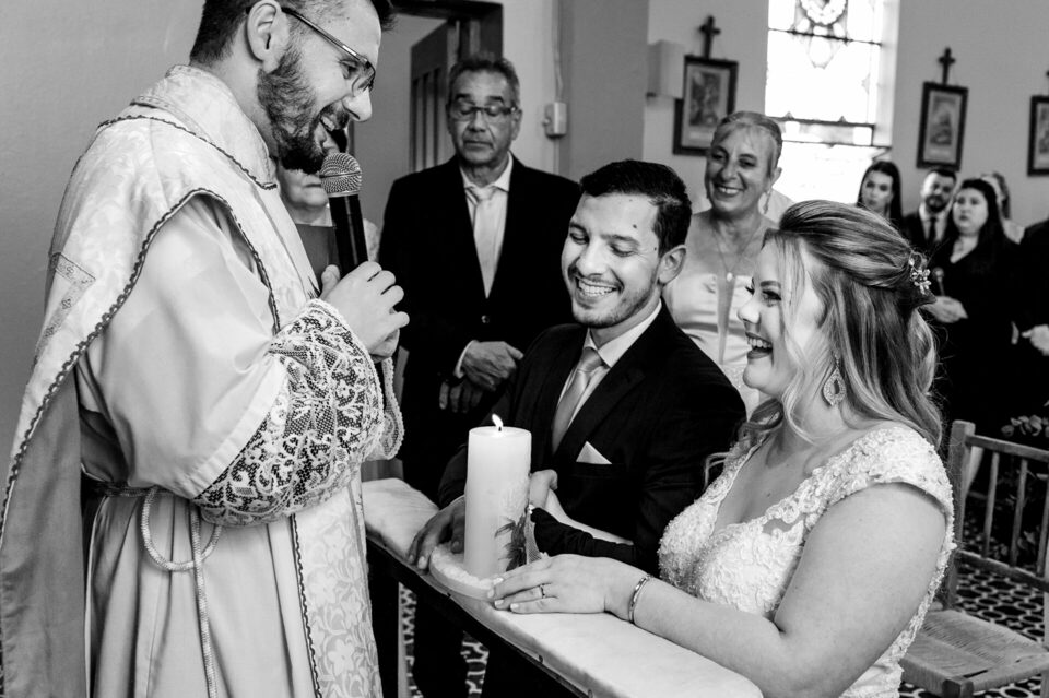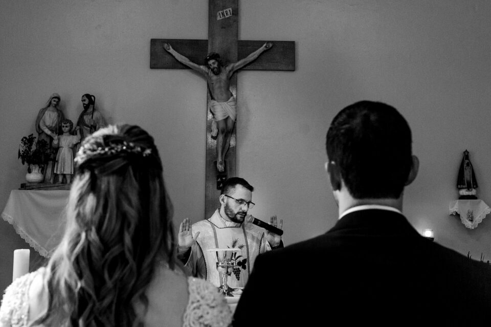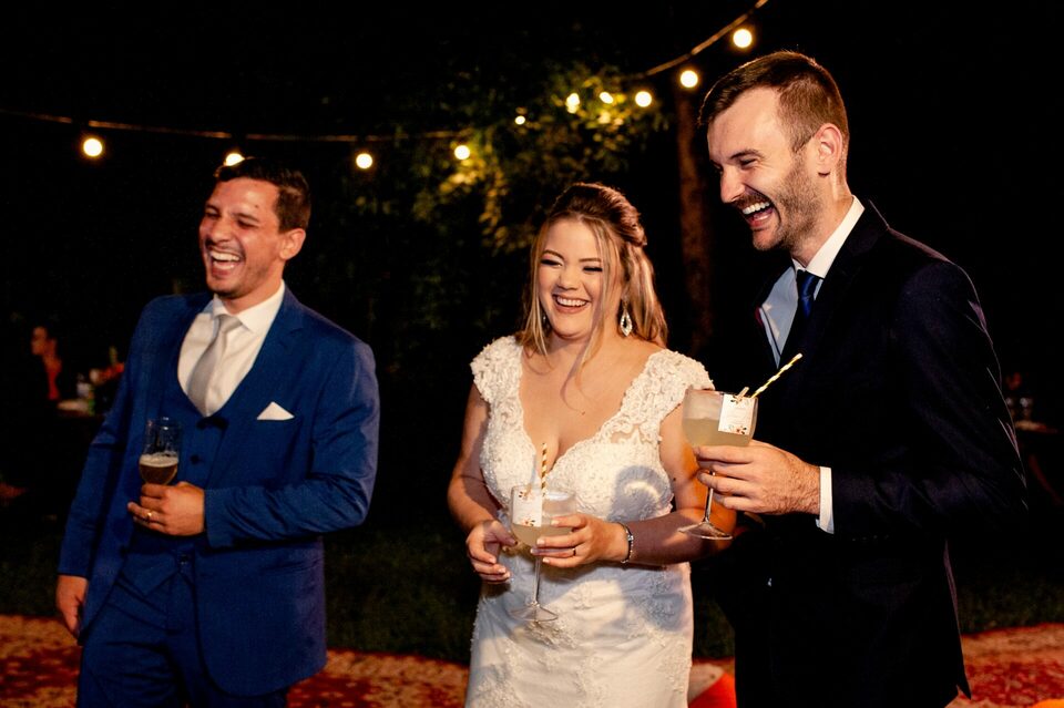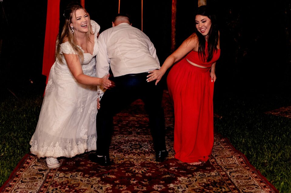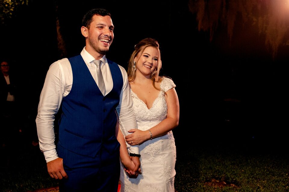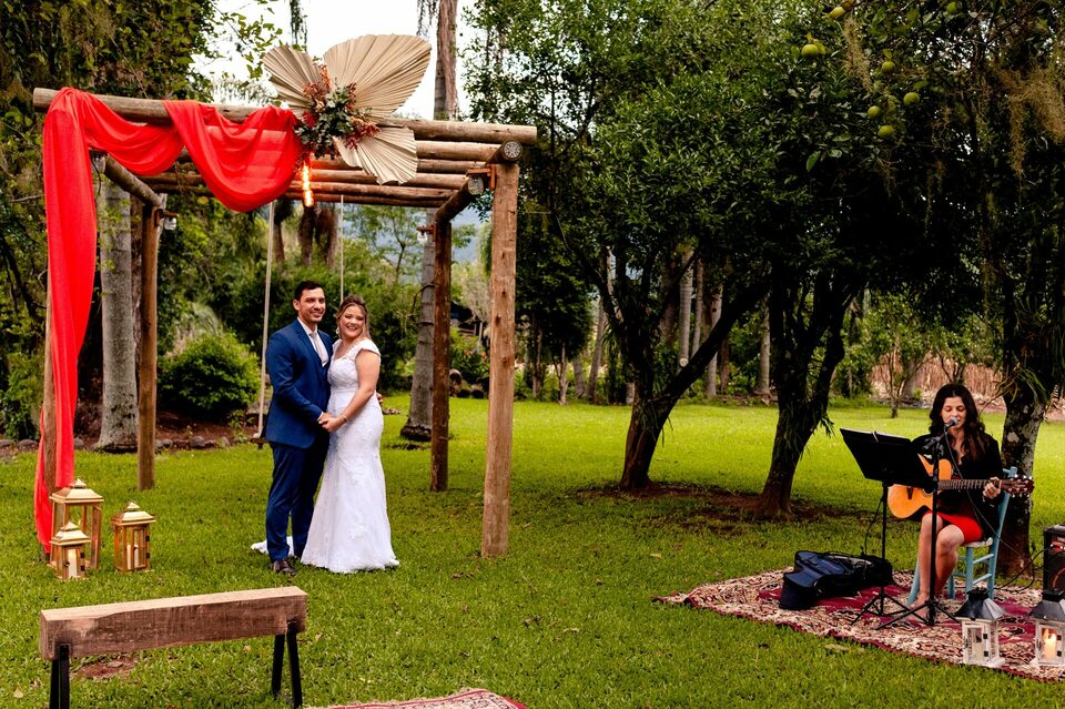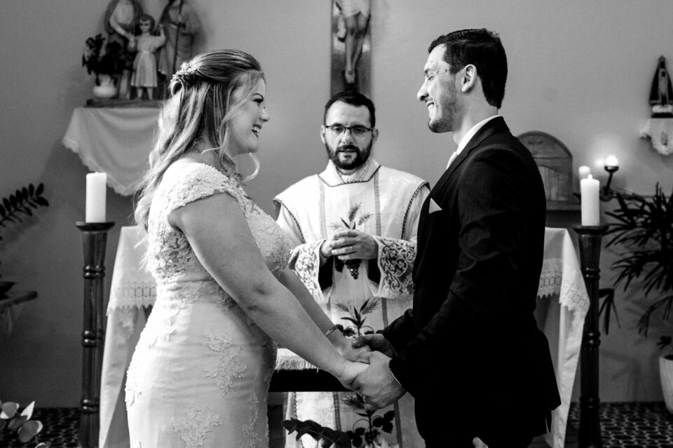 O casamento ocorreu em uma igreja no interior de Rolante, local onde a vó da noiva havia casado, uma cerimônia intimista, celebrada por um Padre já bem conhecido do casal, já a recepção ocorreu no sítio da família, tendo muitos dos detalhes construídos pelo pai da noiva para tais festejos. O por do sol e a música ao vivo trouxeram ainda mais emoção a um dos momentos mais lindos do casamento, a troca de votos. A festa ao ar livre contou com uma boa dose de diversão confira abaixo.