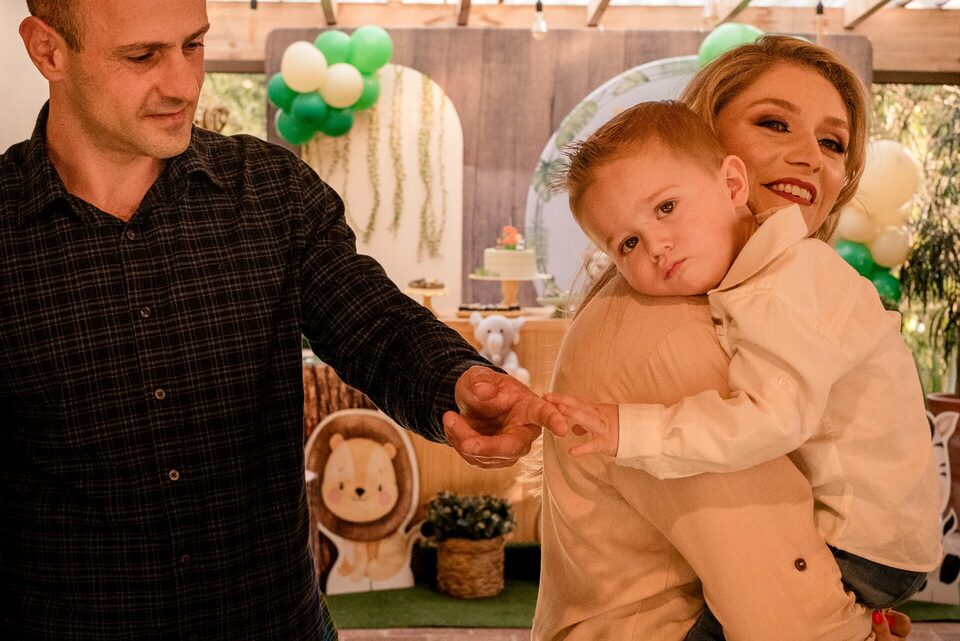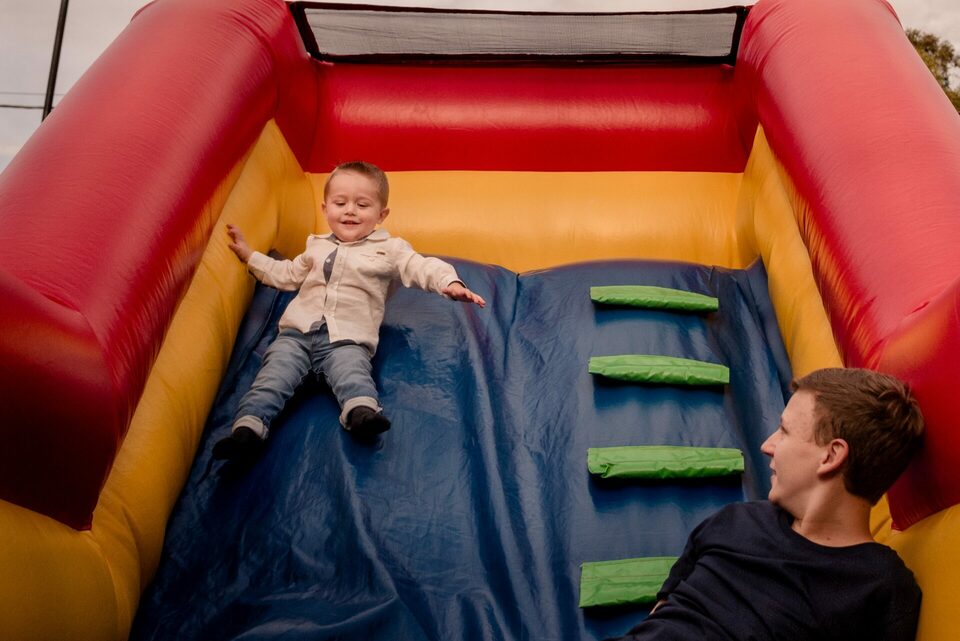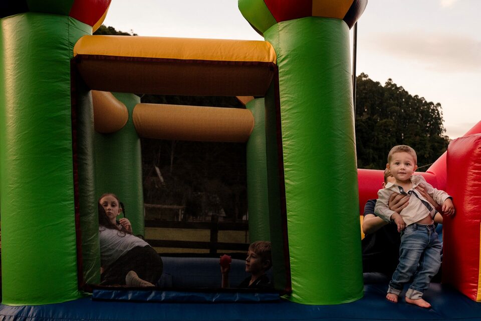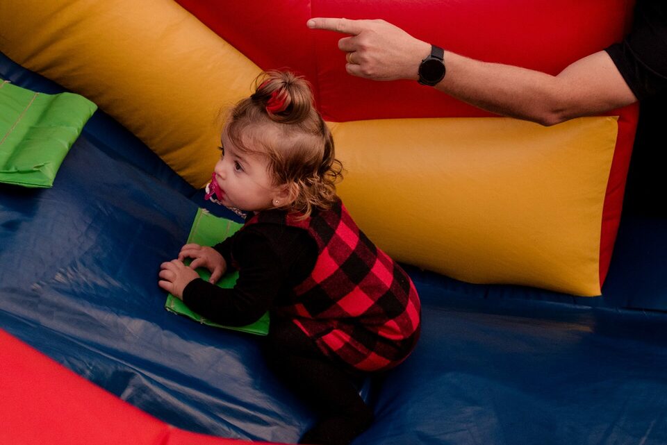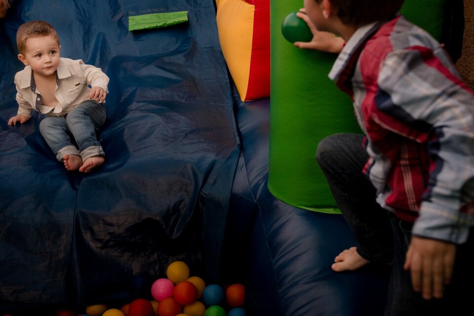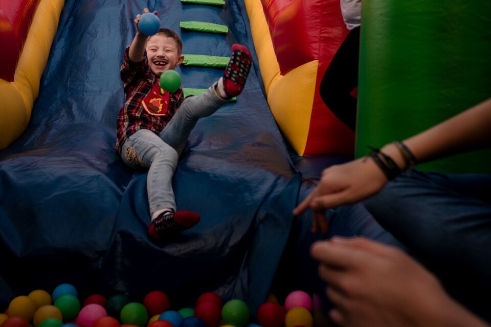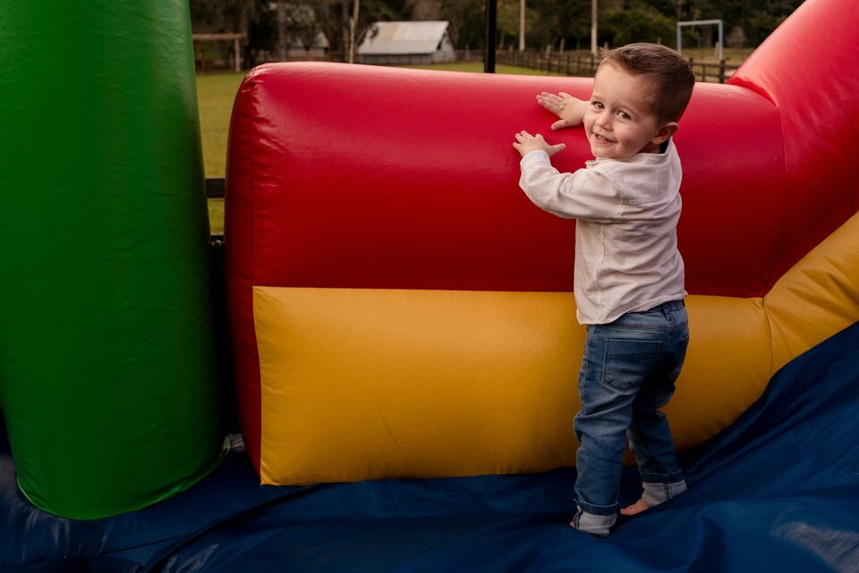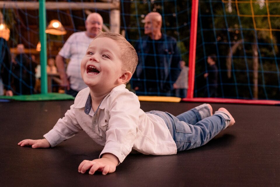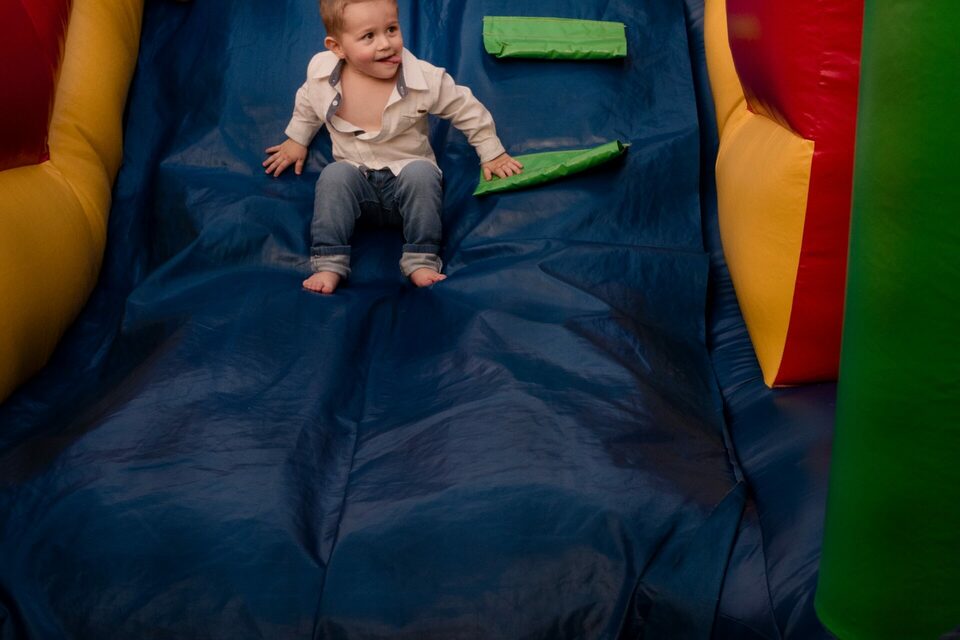 O pequeno Pedro aproveitou cada segundo dessa comemoração. Sua felicidade era visível enquanto se divertia no escorregador.
