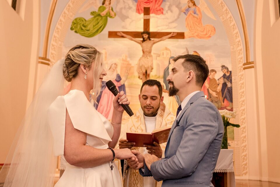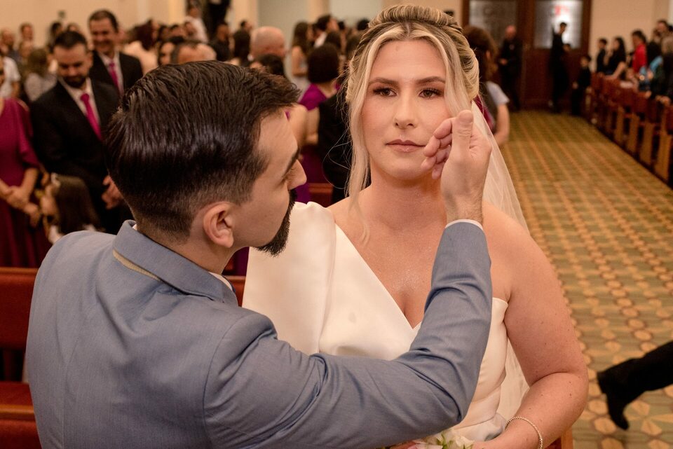 Imagine ser arrumado para o seu casamento pela sua melhor amiga. Foi assim para Leticia, que teve seu penteado feito por alguém tão especial em um dos dias mais importantes da sua vida. Junto com Fabrício, um casal católico e tios do Movimento CLJ, eles celebraram o casamento em Rolante que refletiu sua fé e história juntos.