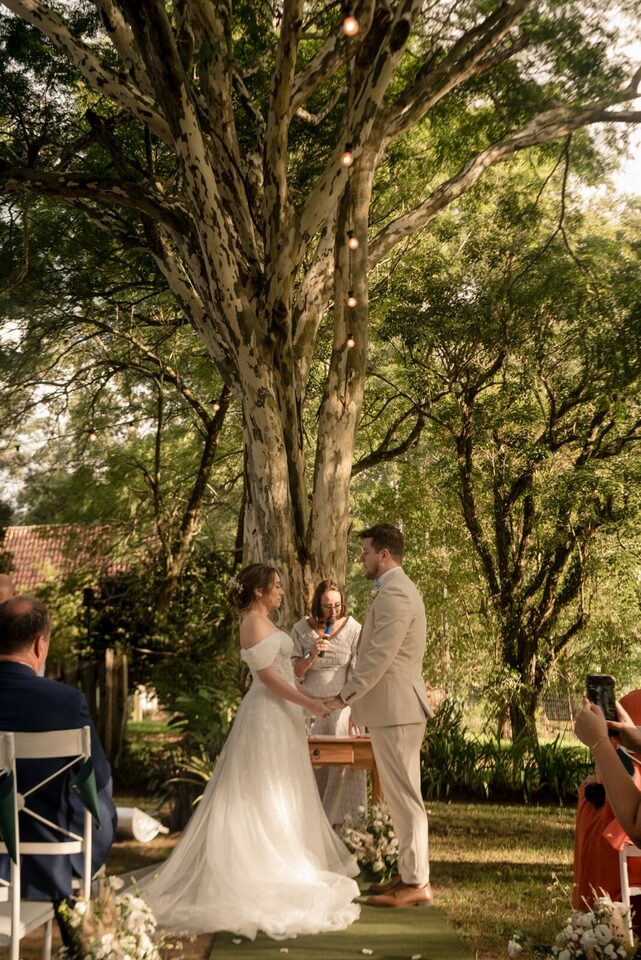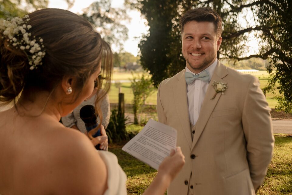 Direto de Dublin para o interior de Novo Hamburgo, Daniela e Bruno escolheram o Recanto Bueno para celebrar um casamento ao ar livre íntimo e cheio de amor. Cercados por poucos e especiais amigos, viveram um dia leve, autêntico e cheio de emoções.