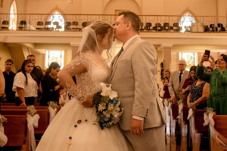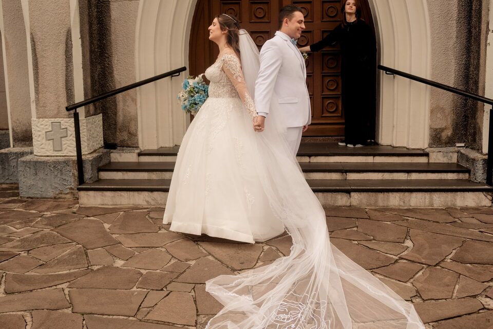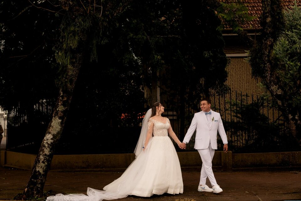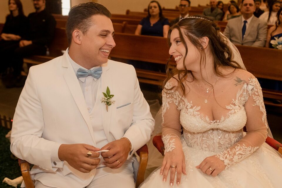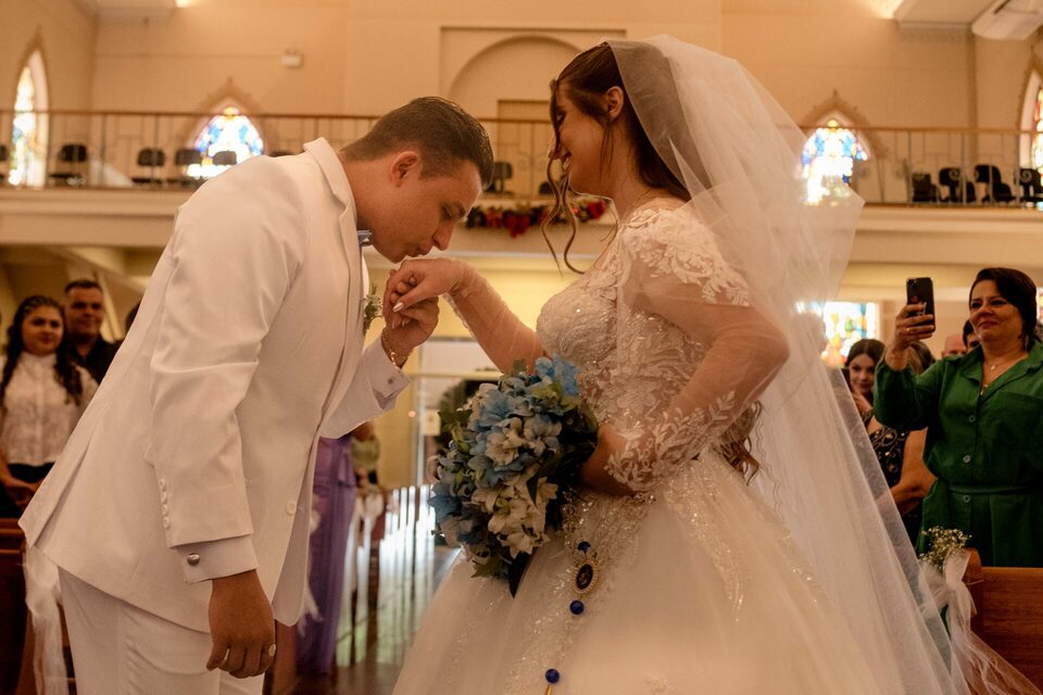 Lívia e Gabriel escolheram uma data especial para seu casamento católico, o dia de Nossa Senhora, como um gesto de devoção e fé. Essa decisão tornou o casamento ainda mais significativo e cheio de espiritualidade. A cerimônia foi realizada em Sapiranga, enquanto a festa aconteceu em Novo Hamburgo.