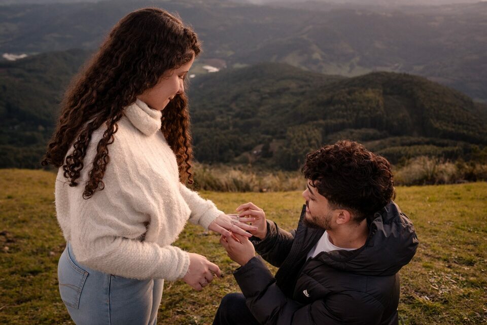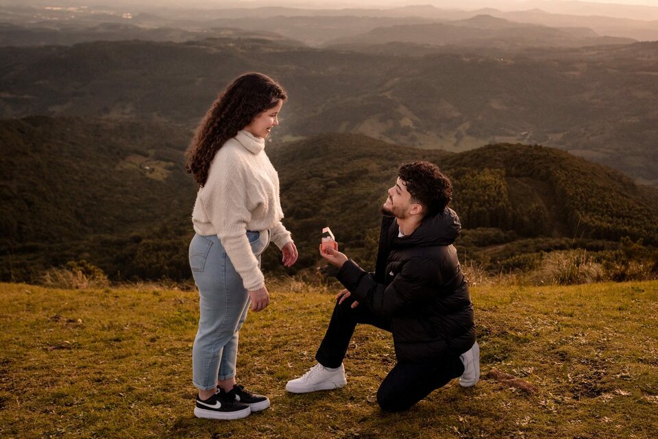 Logo mais nos dirigimos ao Morro Grande para contemplar e fotografar perante ao lindo por do sol. Caio, com um misto de emoção e nervosismo, fez o tão esperado pedido de noivado a Lívia. As lágrimas nos olhos dos familiares presentes refletiam a emoção desse compromisso. Abaixo veja a lindeza que foi esse pedido de noivado.